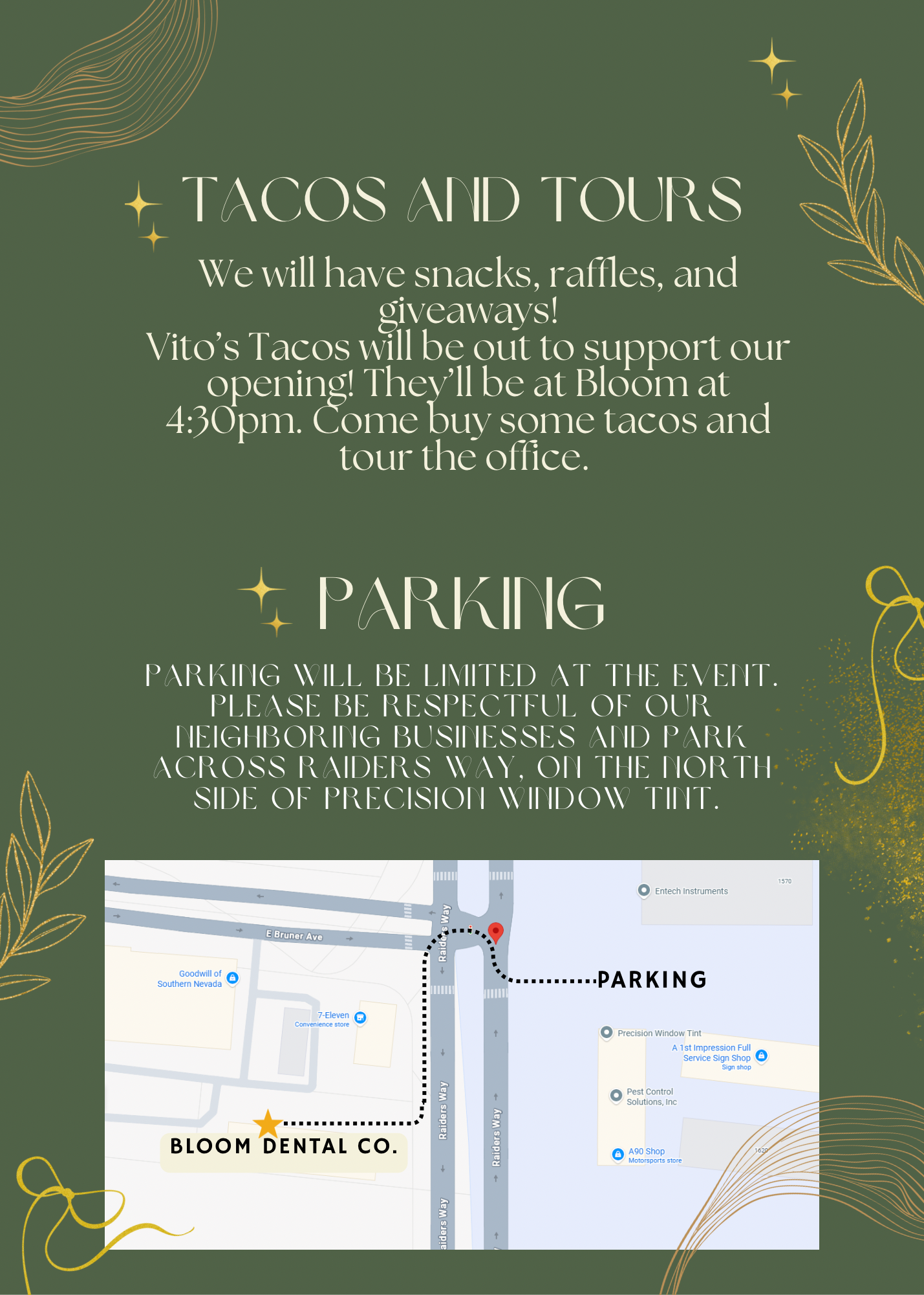 Open house and celebration from 2:30 PM-5:30 PM. Ribbon cutting ceremony will held at 3:00 PM. Bloom Dental Co. is a hospitality based dental practice rooted in comfort, connection, and personalized care, creating a better dental experience for our community. ***Parking Available Across The Street, Follow Signage.***